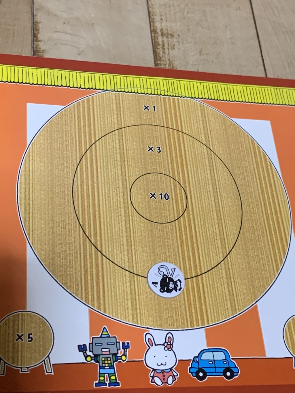 コマが黒の2なので得られる得点は1点×2=2点だそうです。ボード外に出てしまうと相手の得点になってしまうので注意が必要です。7のコマだったら7点相手に献上してしまうわけですね。