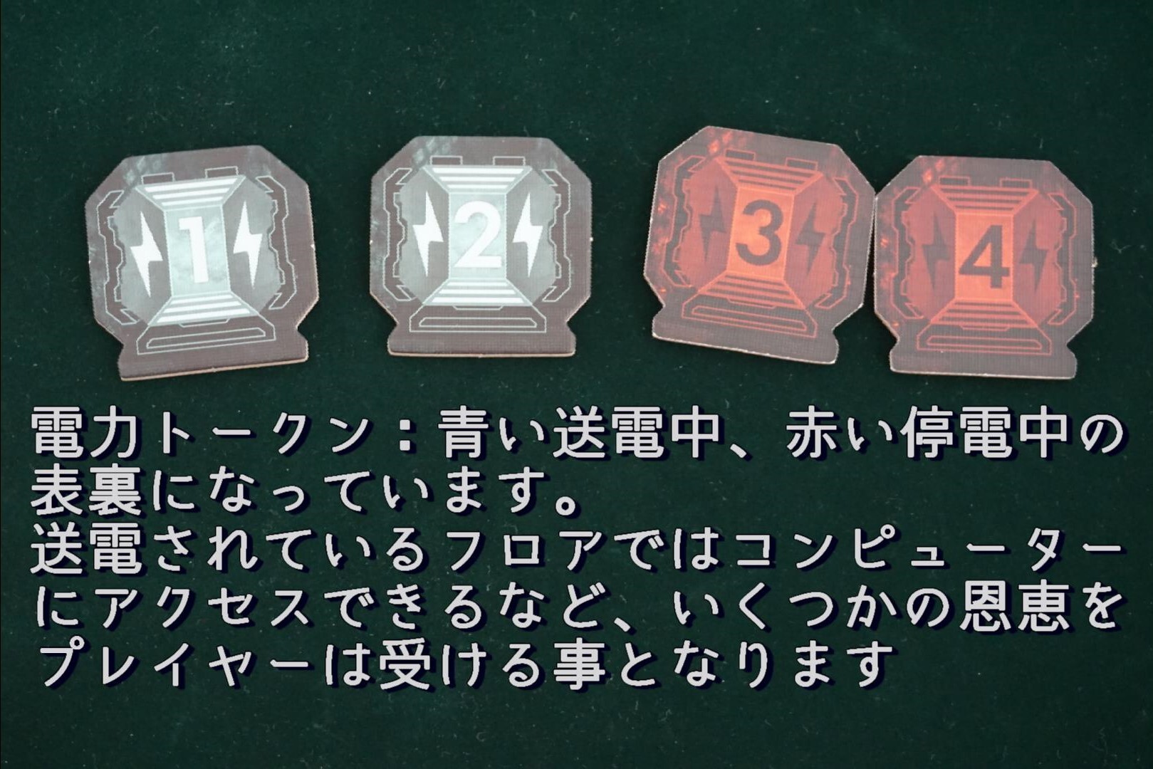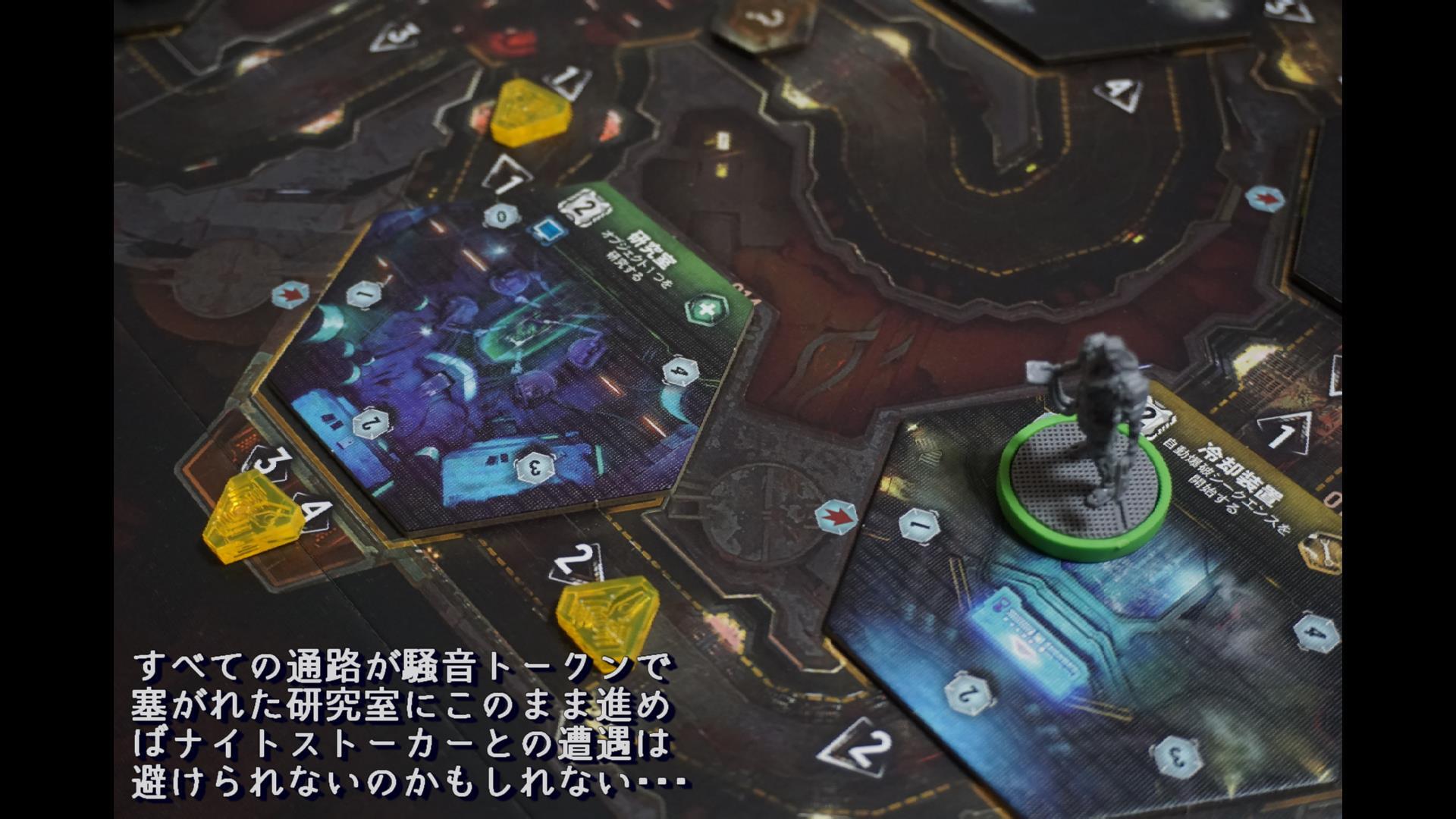 と多岐にわたり、そこにクリーチャーである「ナイトストーカー」との遭遇・イベント・戦闘や、電力の供給、施設内の設備を利用するルームアクションといったいくつものルールが複雑に絡み合い、初見のインストハードルが高く感じられるかもしれません。
