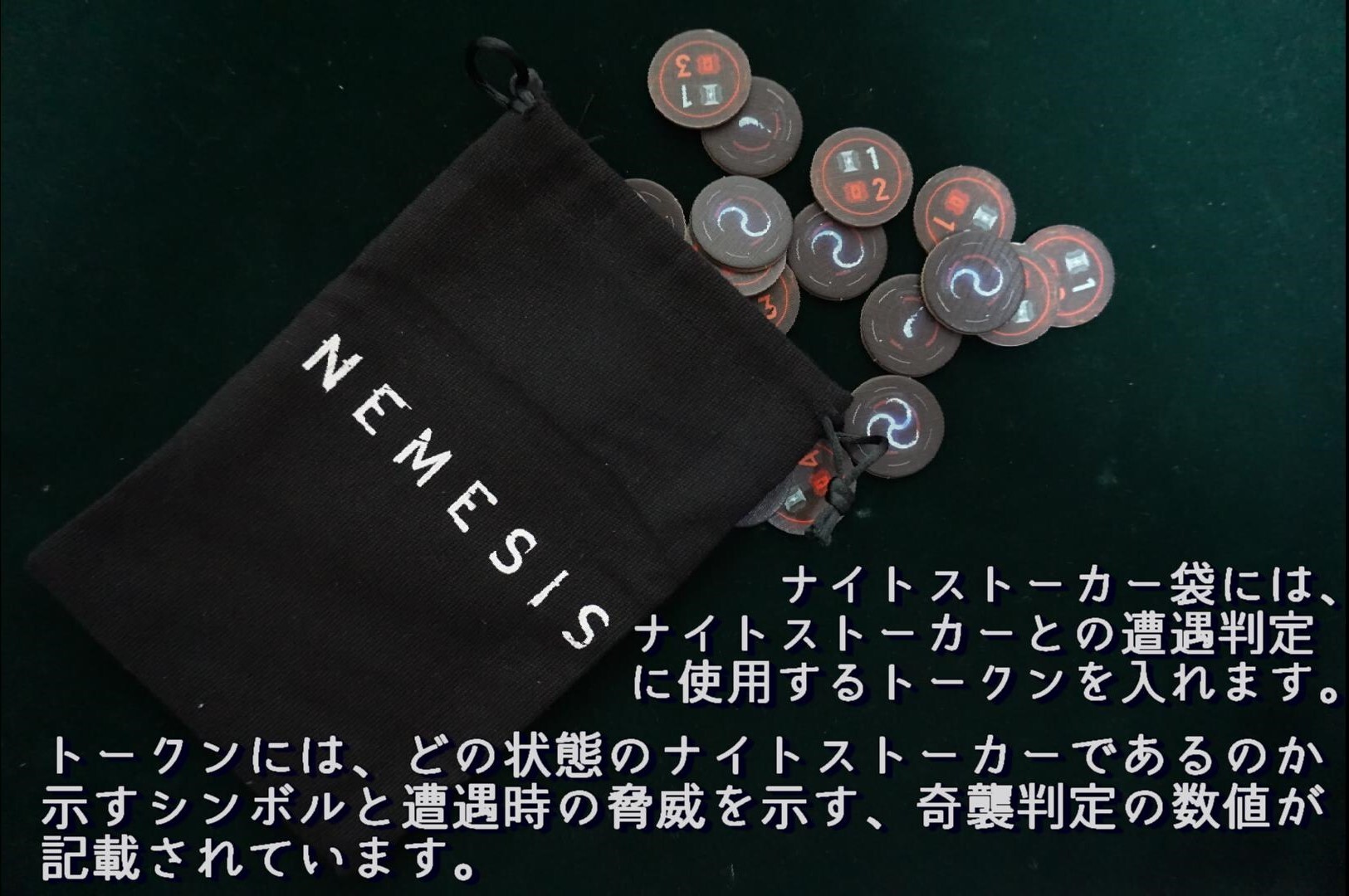 - ナイトストーカー袋に「ダミー・幼体・成長体・完全体」それぞれのトークンを決められた数入れたら、
