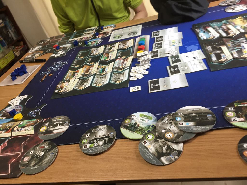 このゲームは建築発展形のゲームで、自分のボードにタイルを追加していって、そのうえで資源を置いたり、お金を置いたり、作業員を置いたりして、得点を集めていくゲームです。