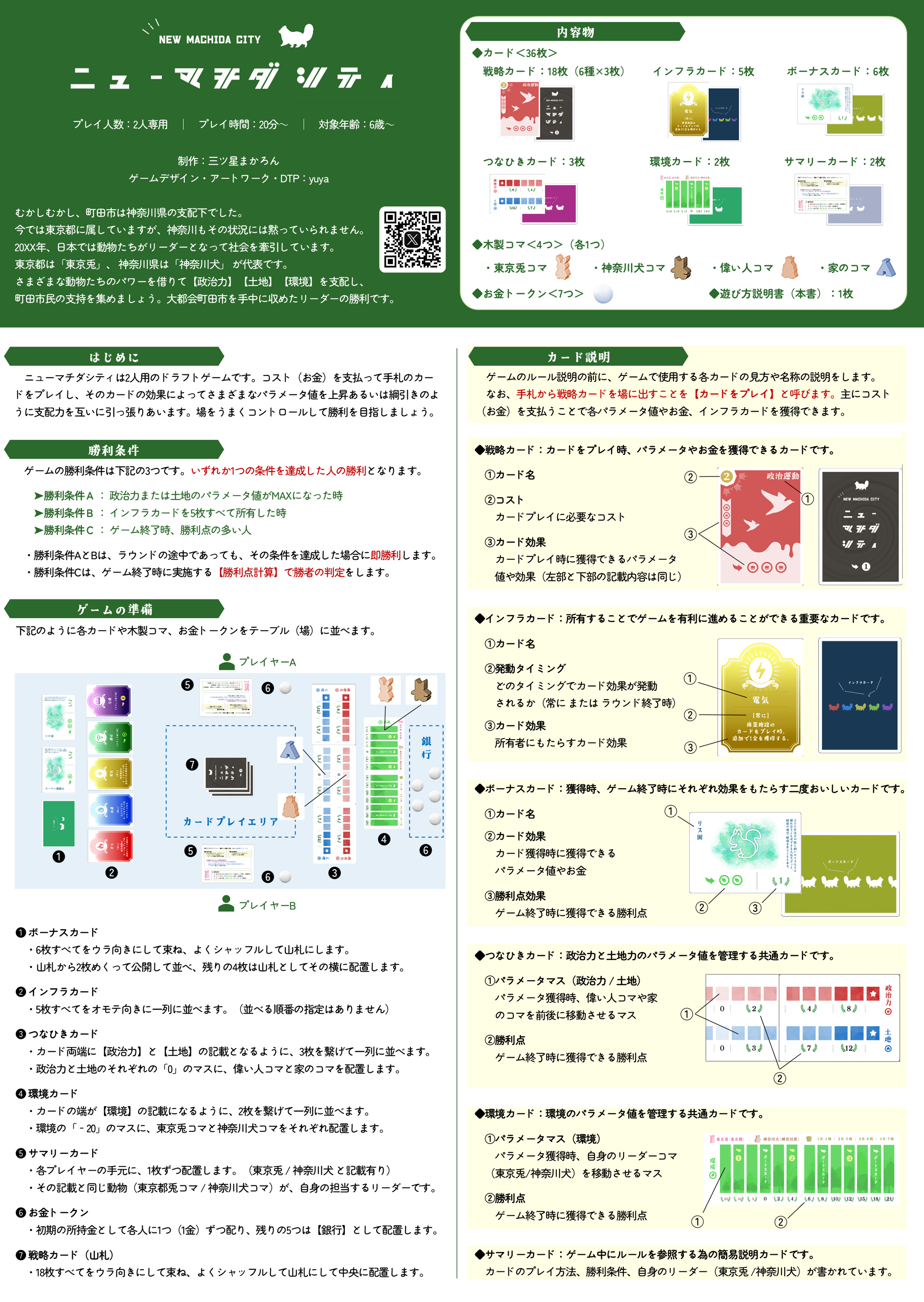 ルール/インストああ、1文字足りな本作の遊び方についての説明書となります。オモテ面とウラ面で、2ページの...2年弱前の投稿