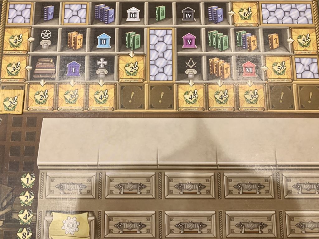 あと、大学や史跡の位置によっては、なかなか列を完成しづらいときもあります。理想型にこだわってしまうと、無駄に手数を掛けてしまいます。最終ラウンドに完成した列は、1回分のVPしかもたらしませんし、逆に序盤は、難しい列を狙わないことです。