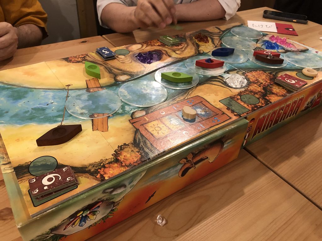 リスのお仕事などをデザインしたトーマス・リーシングによる、ナイアガラの滝を舞台に天候を読みつつ各プレイヤーが宝石を取り合い、一定量を獲得したプレイヤーが勝利するゲームです。