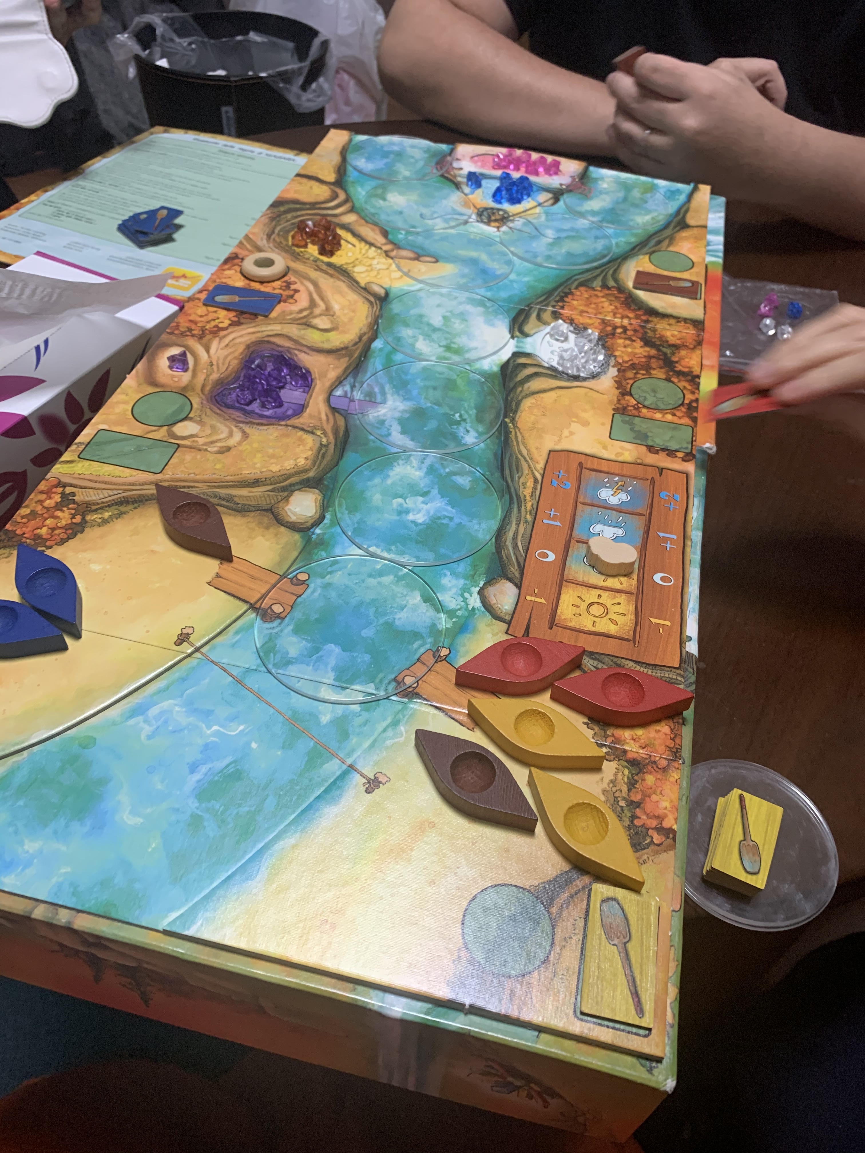 川の流れを表す丸いプレートが、やってるうちに擦れてきて流す時に重なりがちな気もしますが、そこはプレイヤーたちのささやかな思いやりと協力で乗り切ってください。
