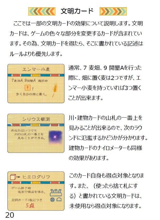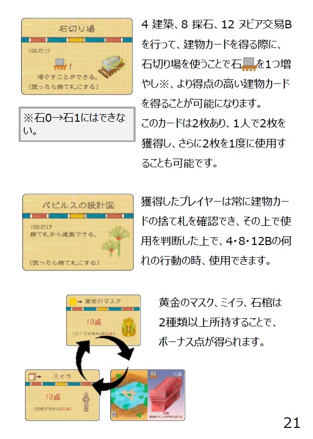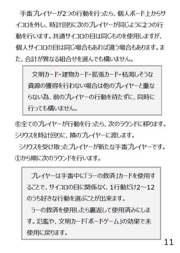 ・文明カード「パピルスの設計書」は、4・8・12Bの行動を行った際に使用可能です。
