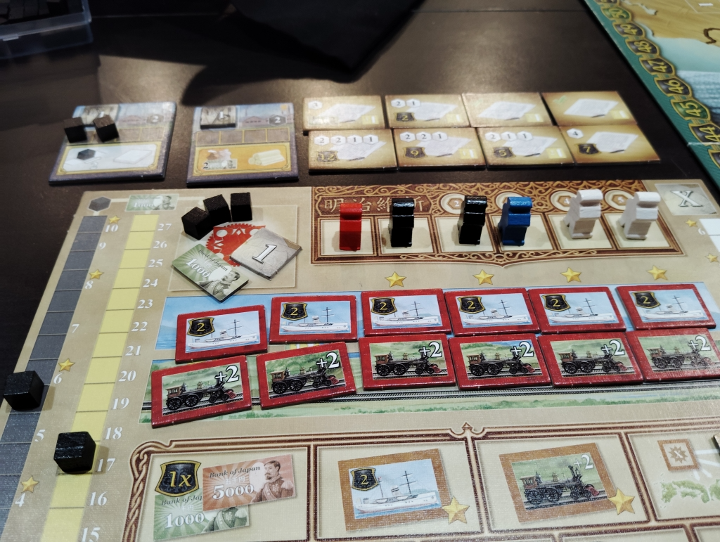 アクションスペースに配置されているワーカーが無くなると補充されて、ある程度無くなると決算コマが進み、決算マスを超えると決算になります。