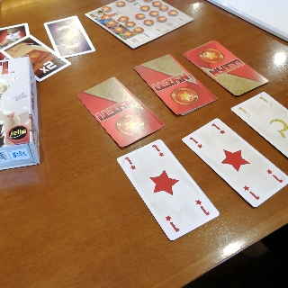 最後に1位の人と組むと逆転ができないので、そのへんだけは辛いね(;´∀`)4~5人で2vs2、2vs3のチーム戦トリックテイキングゲームとしてオススメです。