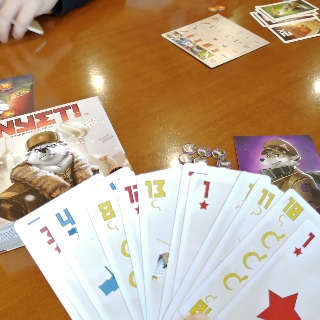 誰とチームになるか、投票の仕方から自信があるのかないのか、チームメイトとの並びはとか毎ラウンド変化するトリックテイキングゲームで楽しめましたね。