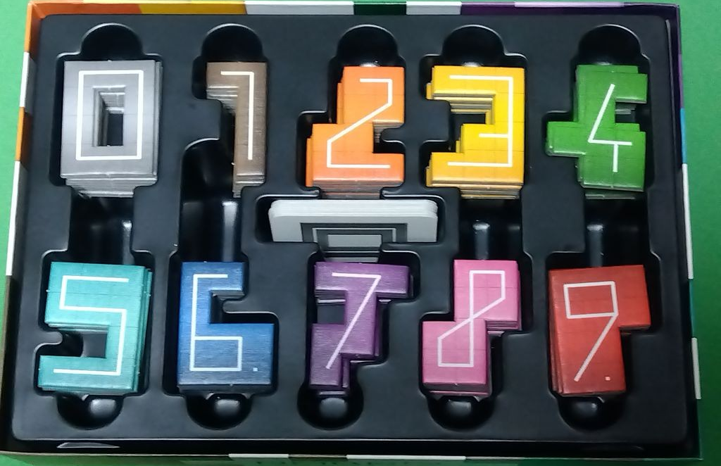 0-9の10種のタイルが8枚(1人2枚✕4人分)、カード20枚(同じ数字が2枚)の構成。