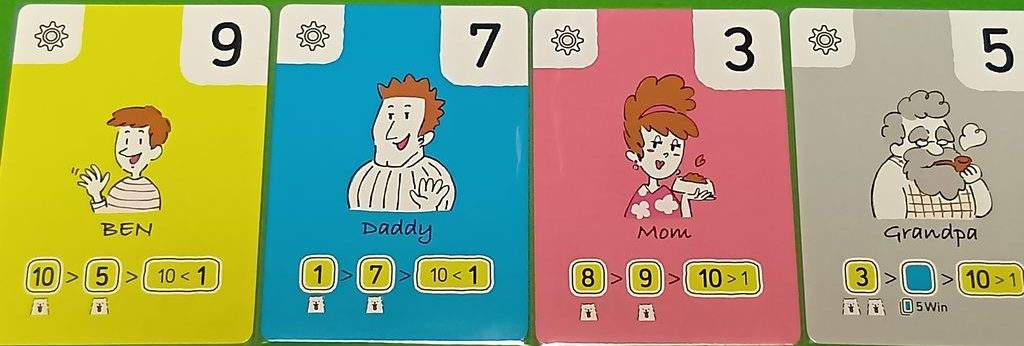 4人の家族がそれぞれ対戦相手に。ソロなら2〜3人追加できます。(※ソロシナリオだと4人全員を相手にするシナリオもあり)。