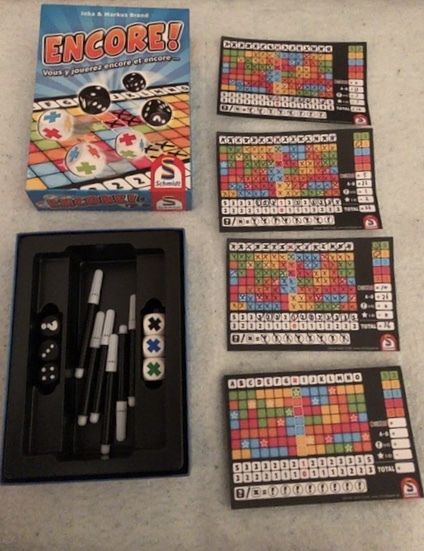 内容は、このゲーム専用のプレイシートにできるだけ早く多くの列と色のマスを埋めて、点数が高い人が勝ちとなります。しかし、専用のダイスを振ってマスを埋めていくため、必ずしも希望のマスが埋まるとは限りません。