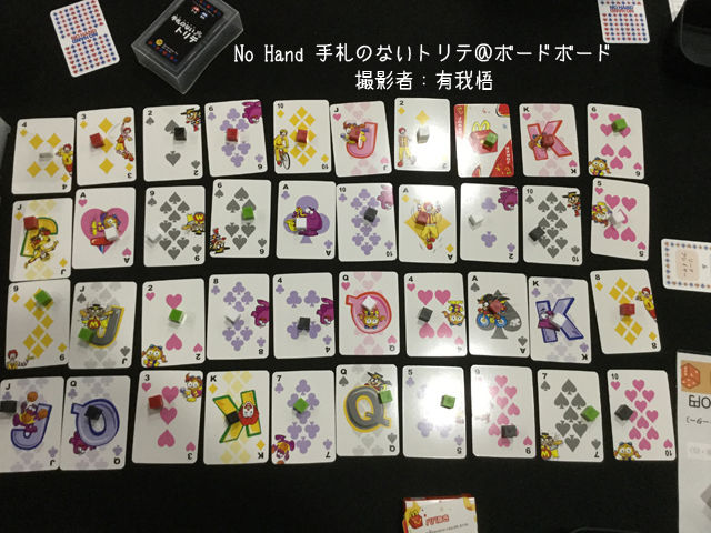なお、結構場所を広げるので、小型のトランプカードが一組あるととても便利です。通常のトランプだと邪魔くさいかも……。
