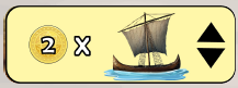 • ステップ1で船を配置した場合、ただちに船カードのコインの値と同じコインを取ります。 |