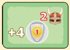 このタイルは、この王国に値4の盾スペースを提供し、ここにアップグレードディスクを配置するには1コインがかかります。 |