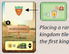 このタイルは、この王国に値1の名声スペースを提供します (通常どおり、ここにアップグレードディスクを配置するには2コインかかります)。 |