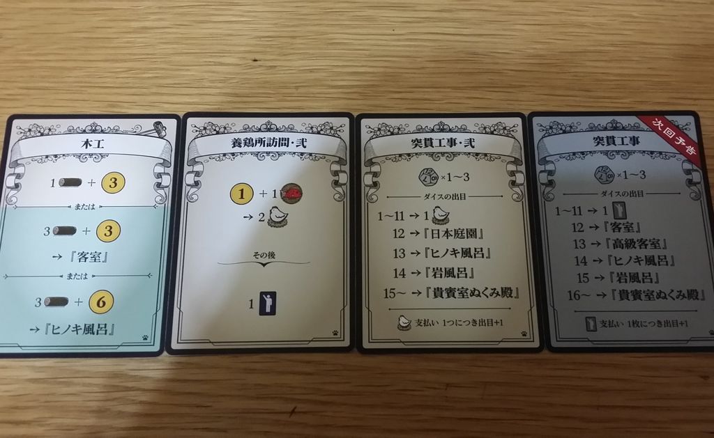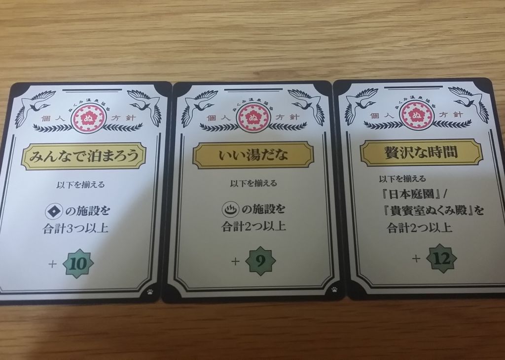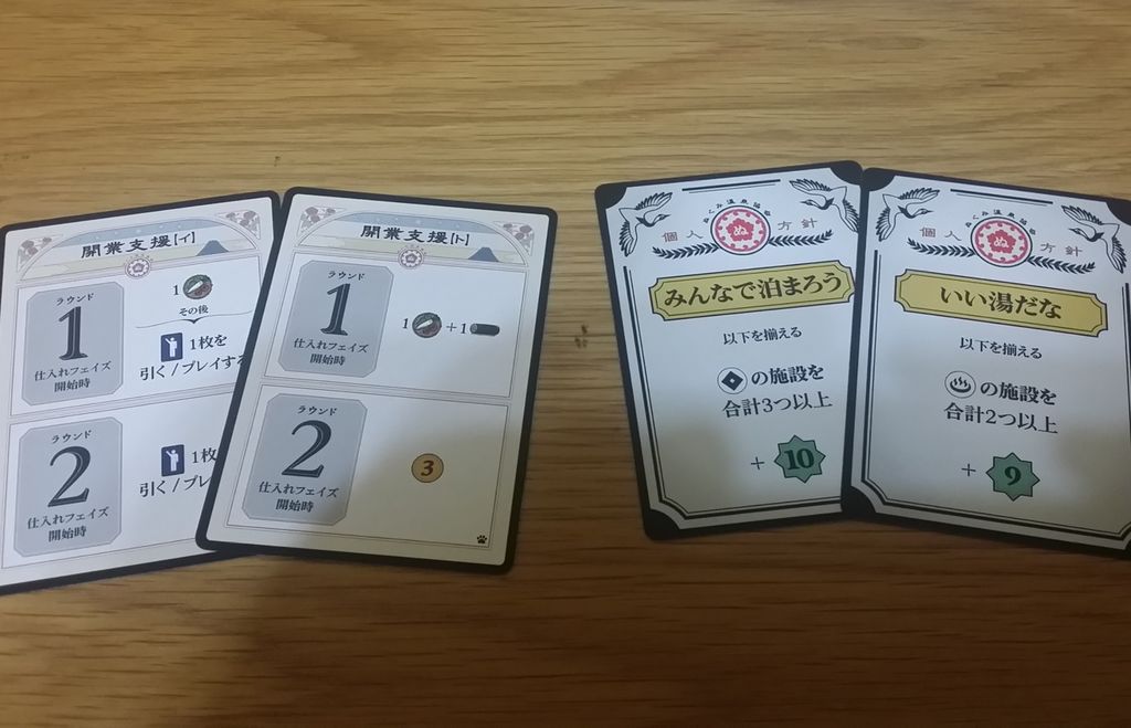 単純に個人目標カードが追加されます。追加される目標は「同じアイコンの施設を集める」系のが多い感じ。目標の種類が増えることで旅館の完成形もより多彩になりそうです。