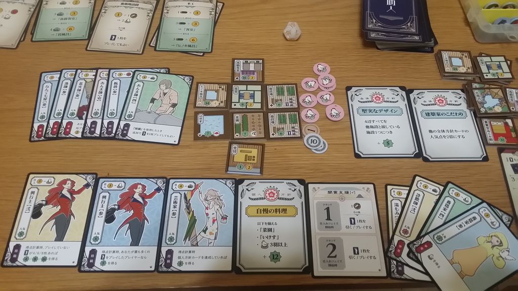 - 名士:ゲーム終了時に資源やお金を消費して人気点を増やしたり。