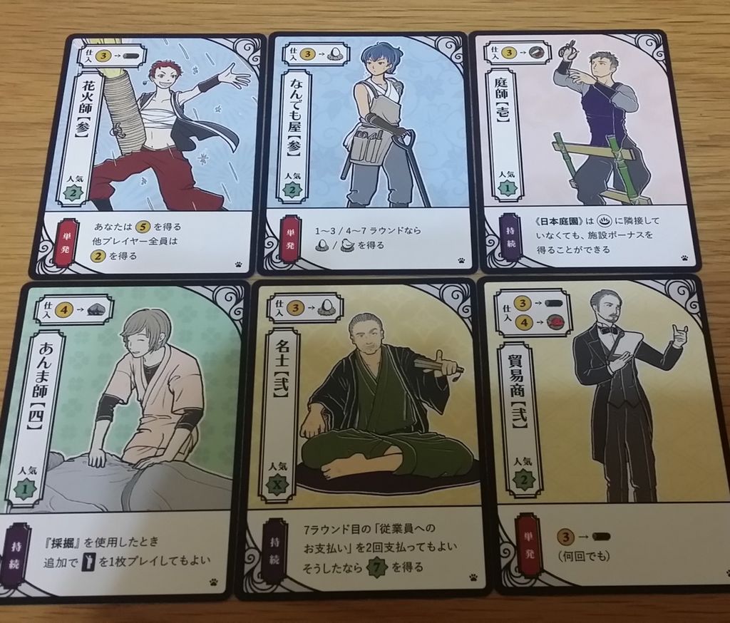 - なんでも屋:ゲームの前半と後半で効果が変わる。