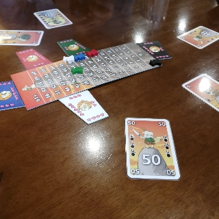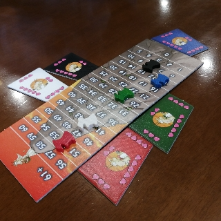 外れたら0点なので、堅実にいくかギャンブルするかにと予想は様々な。5人プレイで8枚ずつ配って10枚余るので、程よく読めない数字が予想を迷わせる。トリックを獲得しても、小さい数字がプレイされてると思ったよりヤギ駒が進まないこともあり、どれぐらいの予想をするかは難しいが的中できたら嬉しい。