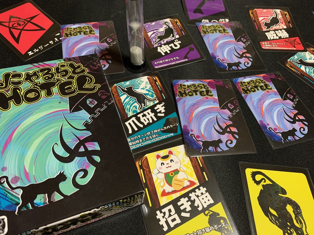 基本的にやる事は、時間内に場にあるカードをめくり、爪研ぎしたり、招き猫になったり、時には犬になってたりする効果を処理しながら、人間に戻る為のカードを手にいれます(^^)