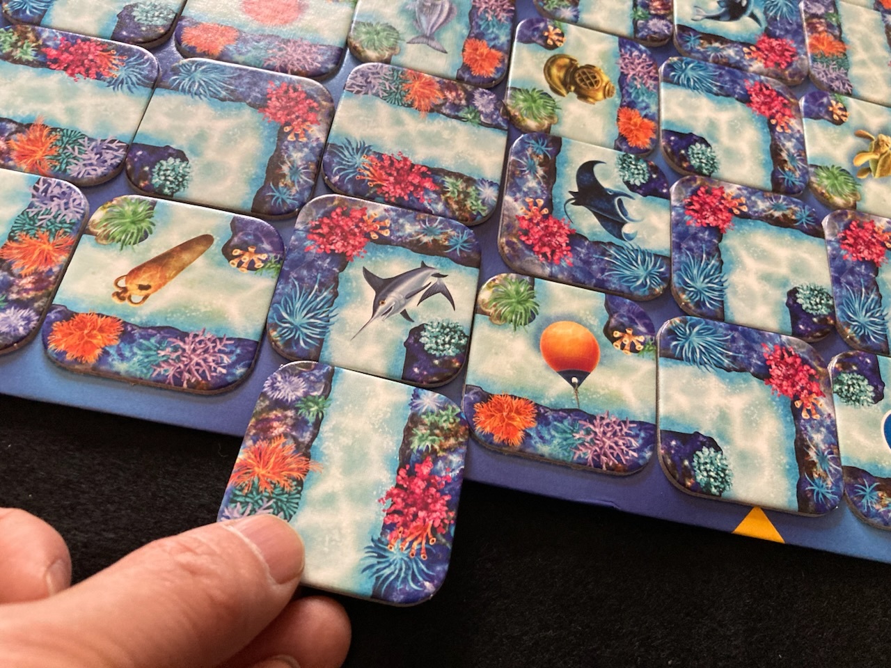 元々のボードには固定したタイルがあって、そのあいだに通路タイルを敷き詰めていく。