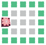 例: ここにある緑色のスペースはすべて、空いていてプレイエリアの端にあるため、キューブを置くのに有効です。 |