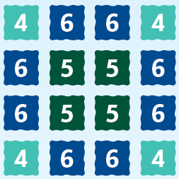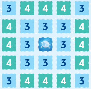 隣接: このゲームでは、隣接関係の概念は縦横にのみ適用されます。決して斜めは含まれません。 |