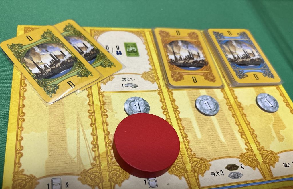 しかも、建物は毎ラウンド少しずつディスプレイに追加される一方で、場合によっては捨てられてしまう建物もあるので長期計画を立てる事が難しく、「今見えてる中でベターな選択」を選び取るという即興的な思考まで求められます。