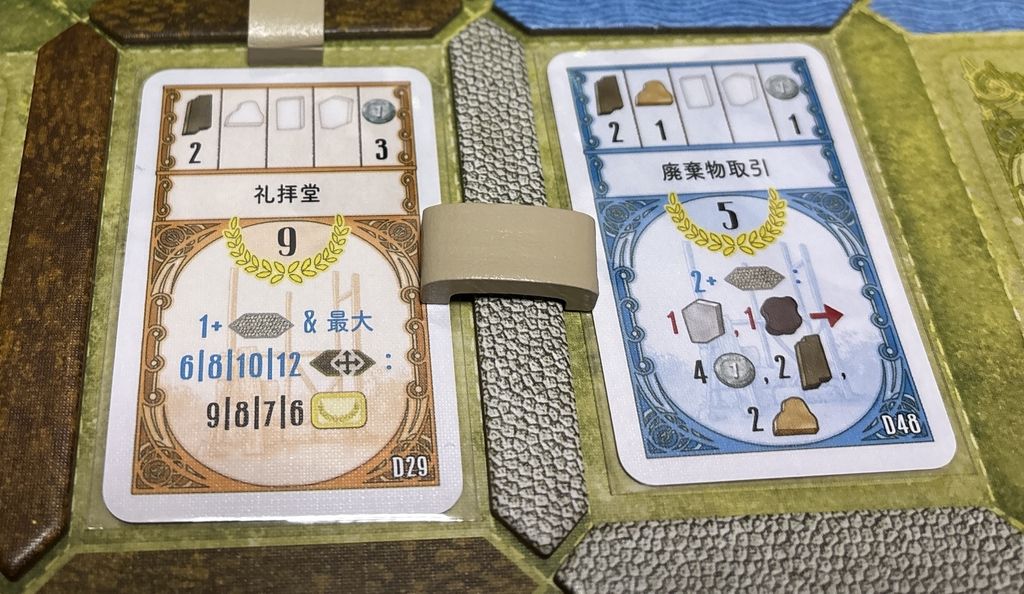 ゲームの要素を大胆に削ぎ落とした中で、削ぎ落とせなかったのは建物の効果。だとすれば、これもまた本作の持ち味として受け止め、最大限に楽しむのが吉ではないでしょうか^ ^
