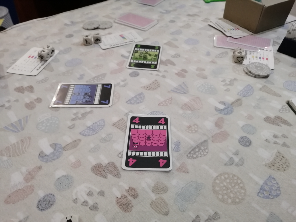 ダイスを振った出目にトリックで獲得したカードの数字合計得点となり、出目は6種あり他プレイヤーと出目が被っていると数字が合算されて120点以上になるとチップを獲得します。