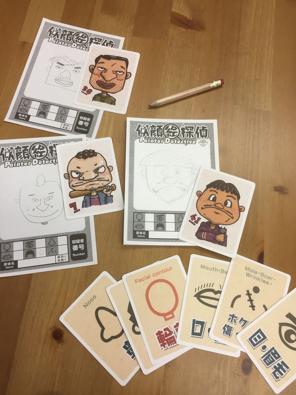 探偵役と目撃者役に分かれて、目撃証言を手がかりに犯人の似顔絵を描いていく推理ゲーム!!