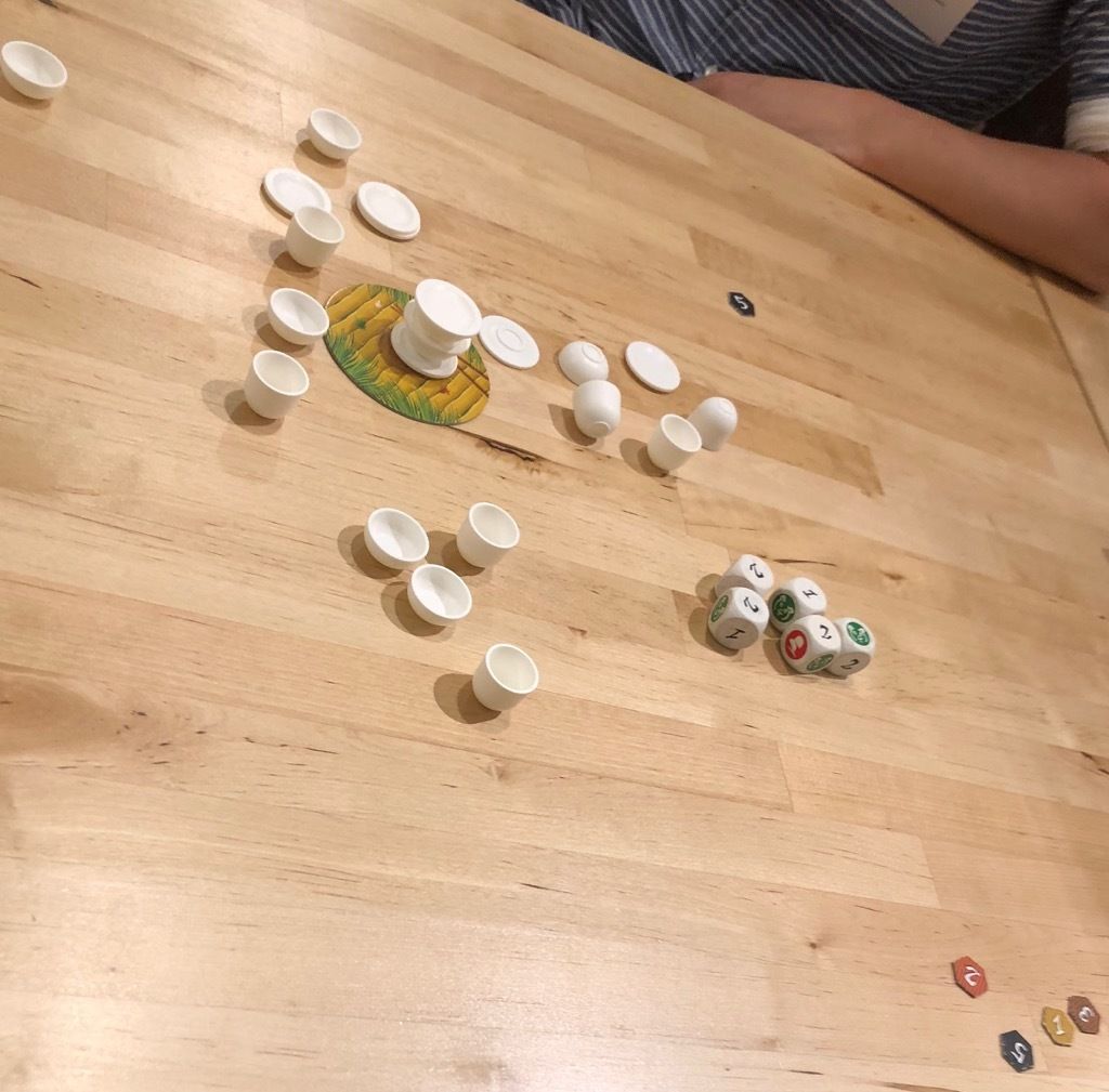ゲームの感想は、いかに自分の前にサイコロを置かないかを競う関係で、常に忙しなかった印象です。