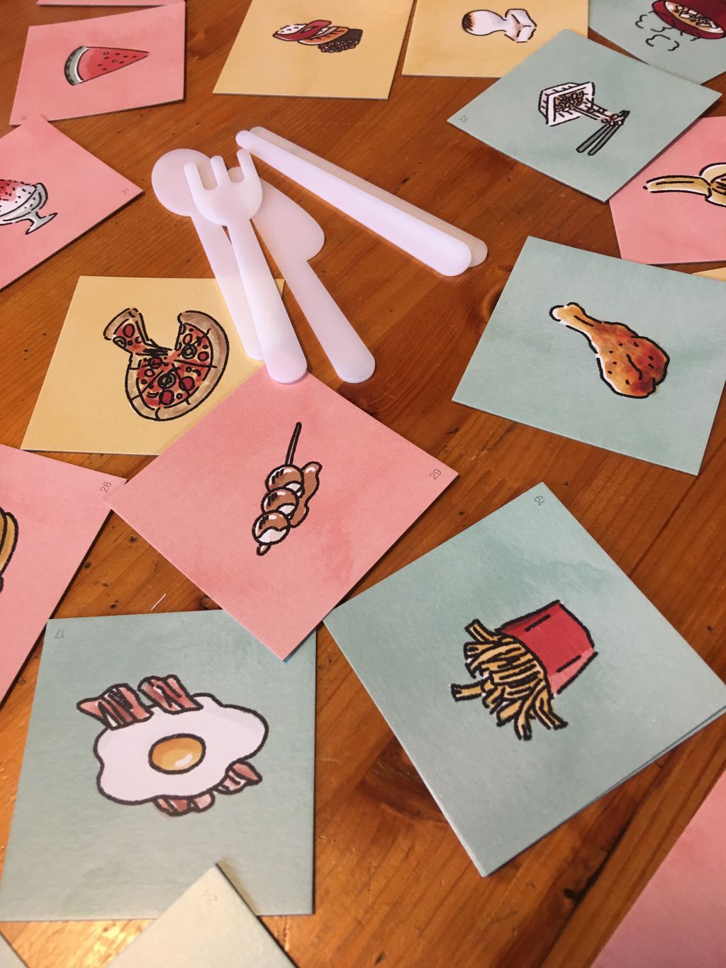 カードの絵がかわいくて楽しい気持ちになります。それだけなく食べ方という点でちゃんとバラエティーに富んでいて、でもちょっと似ているものもあって、ほど良いバランスで楽しめます。