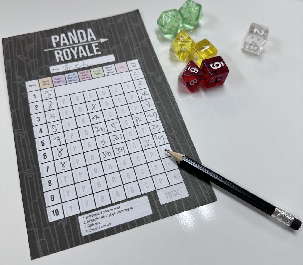 そして、1ラウンドに1回ダイスロールしてその出目を書き留め、10ラウンドの合計点の高い人が優勝です。