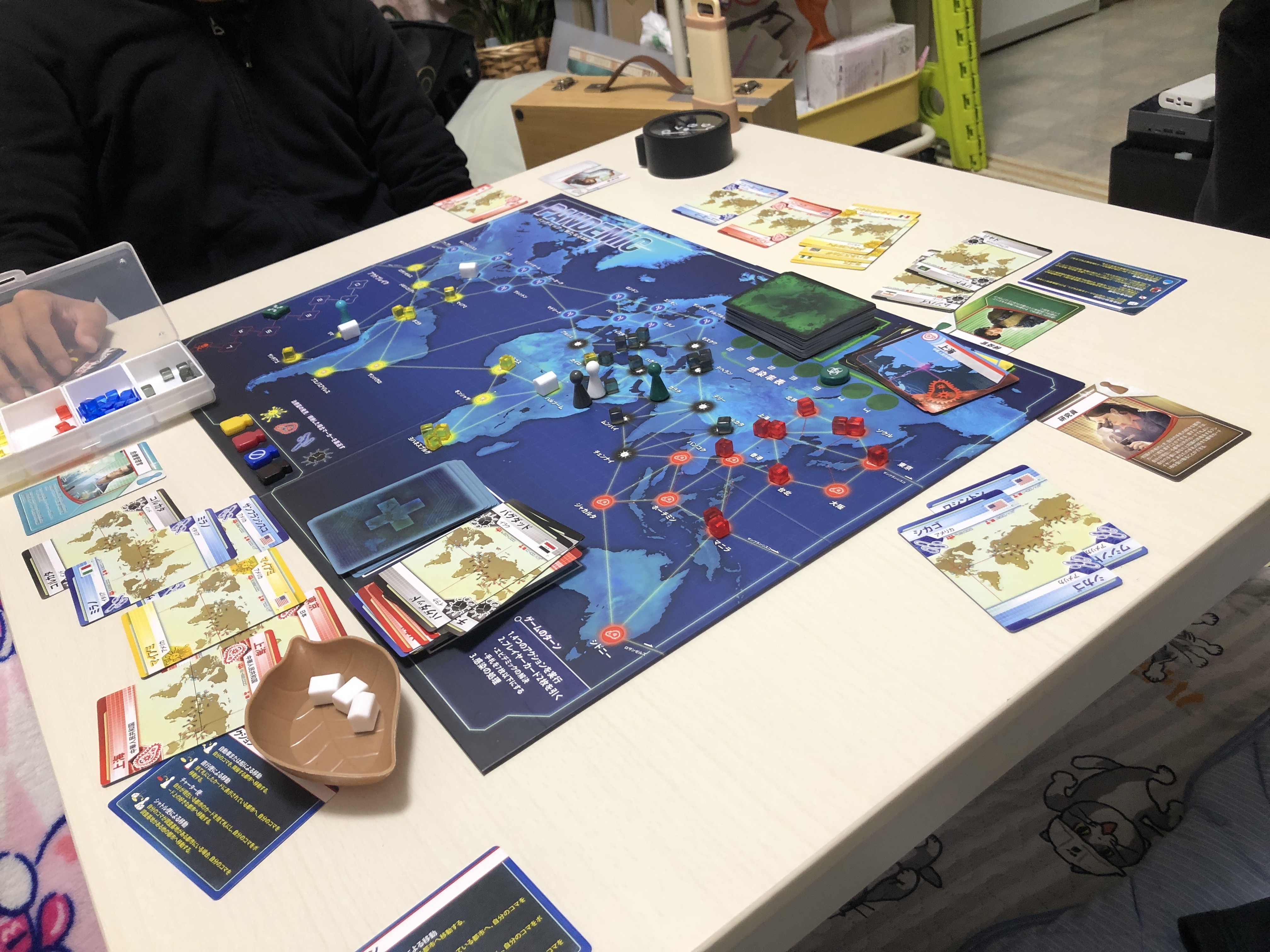 世界で同時に蔓延した4つのウイルスに抗うゲーム。協力系と言えばコレを買っておけば間違いないレベルで面白い。プレイヤーはそれぞれ異なった特殊能力を活用しつつ、ウイルスが世界を滅ぼす前に治療薬を完成させなければならない。4人で知恵を出し合って最善の動きでクリアを目指す。一番難しい難易度でようやくクリア出来ましたが、勝ちを確信した後何度もひっくり返されてなかなか手強いです。協力ゲームなので、対人ゲームでギスギスしたあとに仲直りでやれるのも良いですよね。
