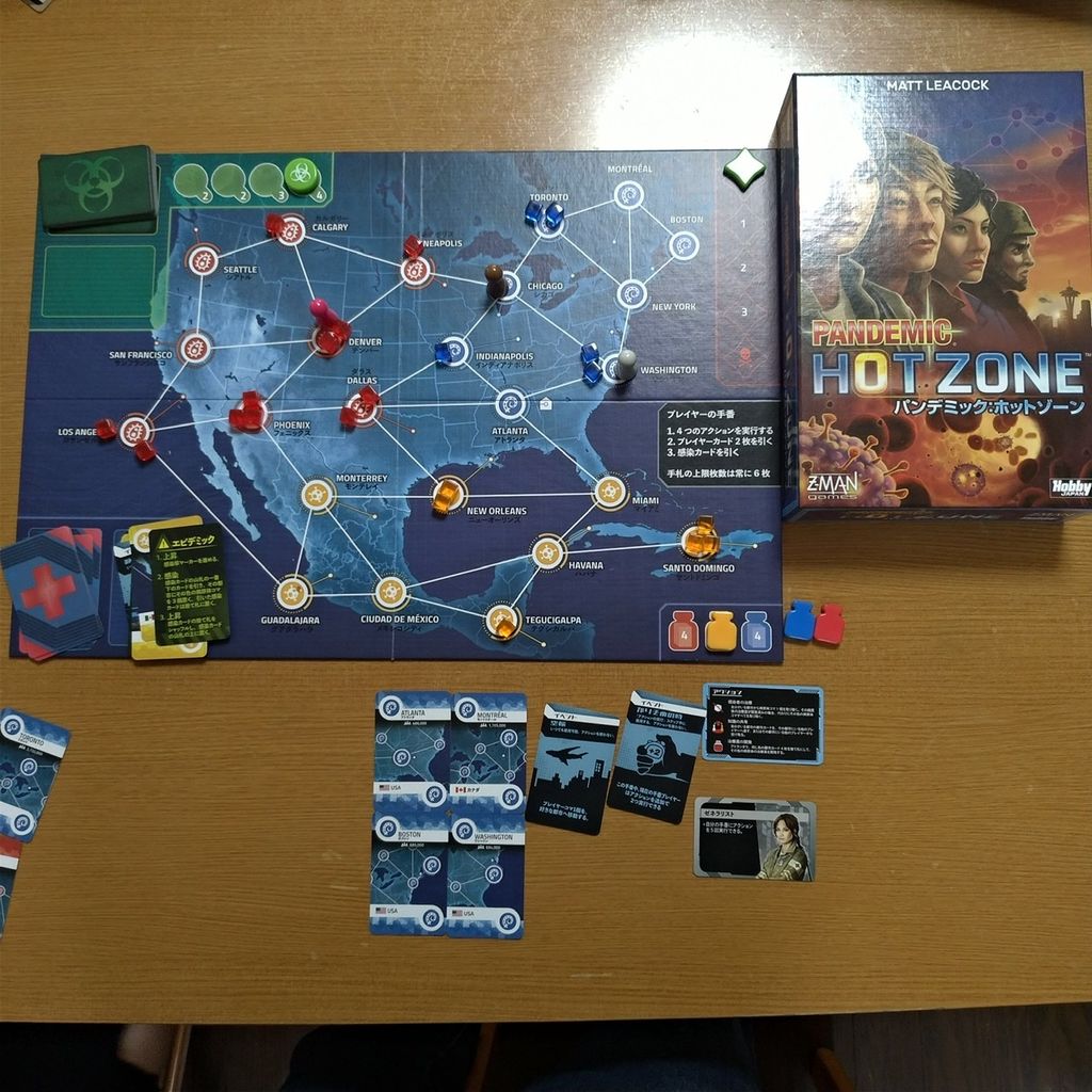プレイする時間は30分ぐらいと短いですし、ルールも難しくないので、1人ルールを理解しているプレイヤーがいれば、あと3人は初心者でもプレイできると思います。ただ、都市カードが思ったより少ないので、割とテンポ良く治療薬を開発していかないと、都市カードが無くなって負けてしまいますので、初心者が多いとクリアは難しいかもしれません。
