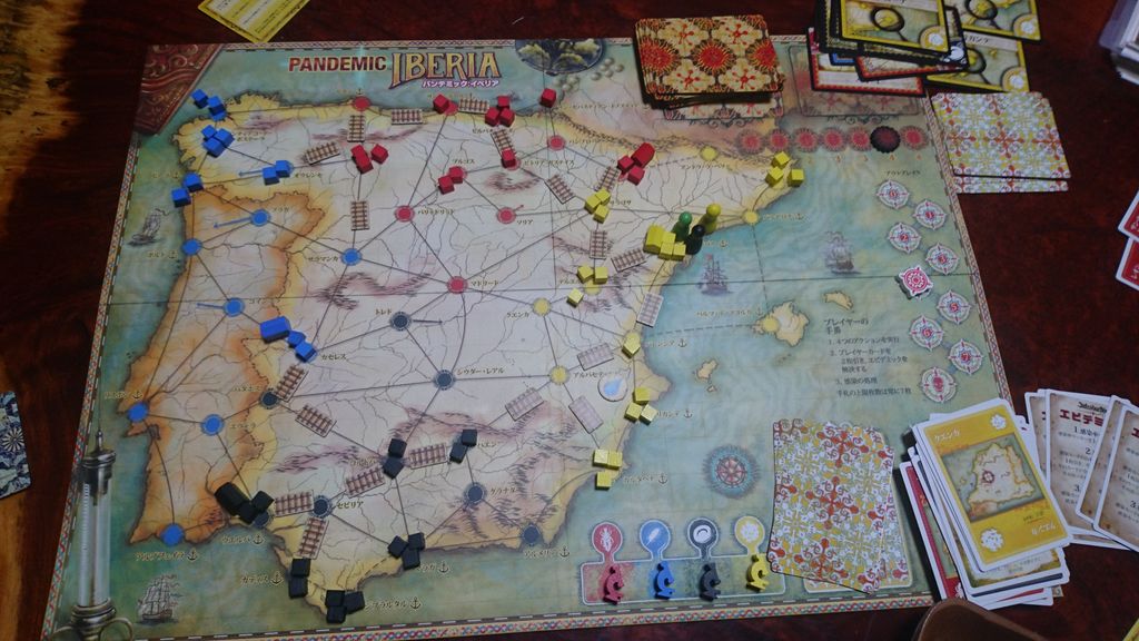 感想としては、オリジナルのパンデミックと比べて移動や根絶の制約によって激しく難易度が上がっていることが良く感じられた。でも、面白い。私が使っていた鉄道員は非常に便利で使いやすかった。しかし、看護婦や医師の力が欲しかったな〜と感じる場面が多々あった印象。でも、農学者の水撒きや政治家の捨て札サルベージも非常に強力で感染者は減らせないが、予防しながら鉄道で知識カードを渡しまくる戦法が確立できたため、シナジーを活かした良い連携が出来た。こういうのが協力ゲームの良いところなのかな?と感じる。