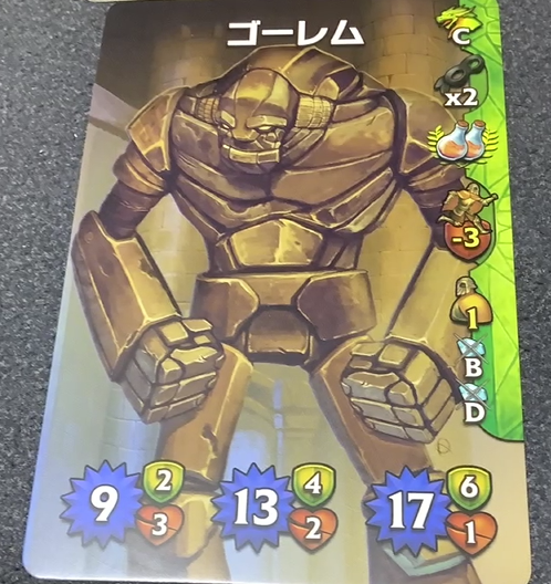 戦闘資格のある人は自身のパーティーのレベルがそのまま戦闘力に反映されていき、推奨職業は(この場合ローグ)は倍の戦闘力になります。そしてその戦闘力の合計が下の青い数字以上だと倒した勝利点と問答無用のダメージを被ります。そして討伐報酬(このカードの場合ポーション二つ)を獲得し、次のシーズンへと進みます。