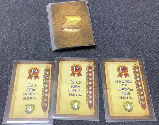 4人パーティーで職業は戦士、ローグ、魔術師、僧侶の中からダイスの絵柄と色が同じな職業のレベルを一つ上げられる。上がると戦闘力とHP(パーティー共用)も上がっていく。