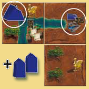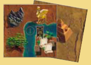 それぞれが1つのランドスケープを選択し、他のランドスケープを左隣に渡します。 次に、選択したランドスケープ(3.2を参照)を配置し、司祭を新しいランドスケープに移動します。これを繰り返して、それぞれが2つ(2人用ゲームの場合)、3つ(3人用ゲームの場合)、または4つすべて(4人用ゲームの場合)のランドスケープを配置します。 |