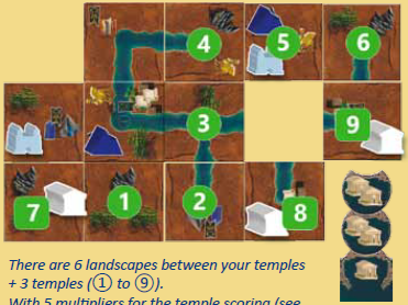 ここには、プレイヤーの数に応じて、3、5、または6つの神殿を配置します。 |