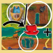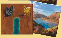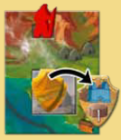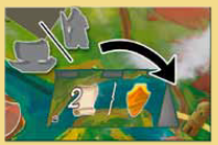 スタックからランドスケープを取る場合、追加で1枚、つまりスタックの中で一番上のタイルの下にある裏向きのランドスケープを見て、そのうちの1枚を選ぶことができます。他のタイルを任意の順序で(この発明を複数持っている場合)スタックに戻し、一番上のランドスケープは常に表向きに配置されます。 |