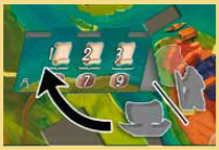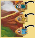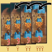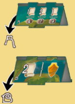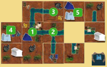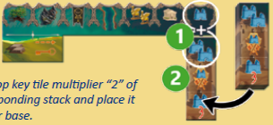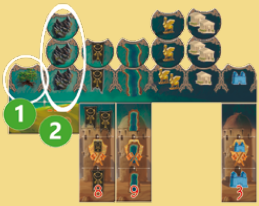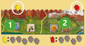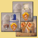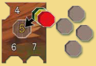 ここでは、プレイヤーの数に応じて、3、4、5、または6つのスコアリングタイルを積み重ねます。 |