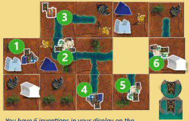 パピルス2つを支払ってスコアリングタイルで追加スコアリングを行った場合、ただちに他のスコアリングタイルを1つ削除します。