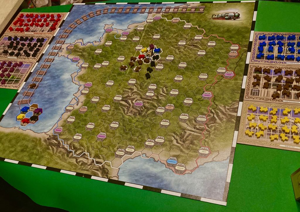 汽車駒を株チャートを上げる得点の都市に繋げずに、得点チャートが上がらない郊外(緑の何もないマス)に、沢山置いて汽車駒だけを消費するプレイもできる