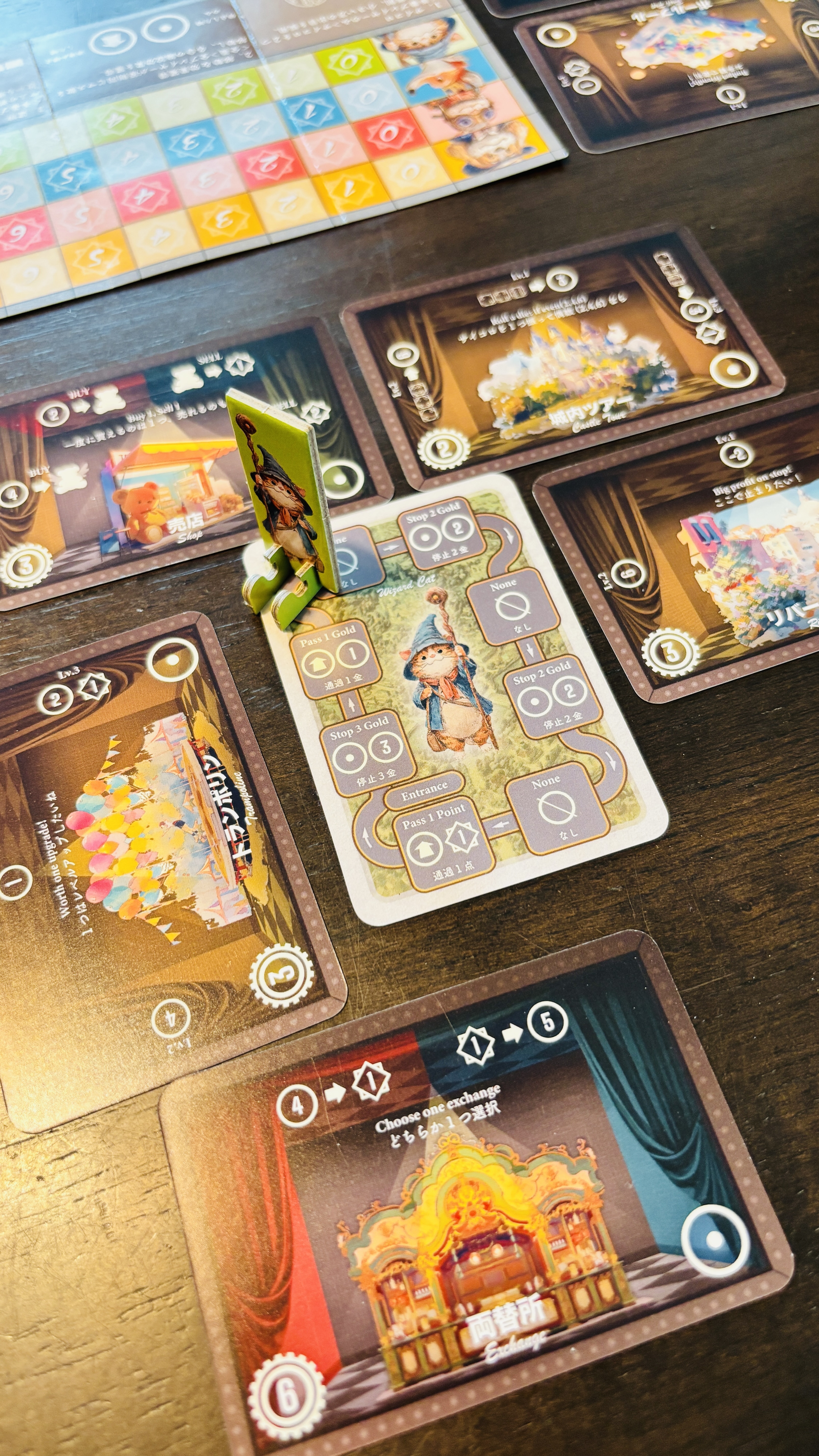 ダイスを振って進めながら徐々に施設を立てて行き、周回するごとに自分の遊園地が充実していくのはとても楽しいと思います。