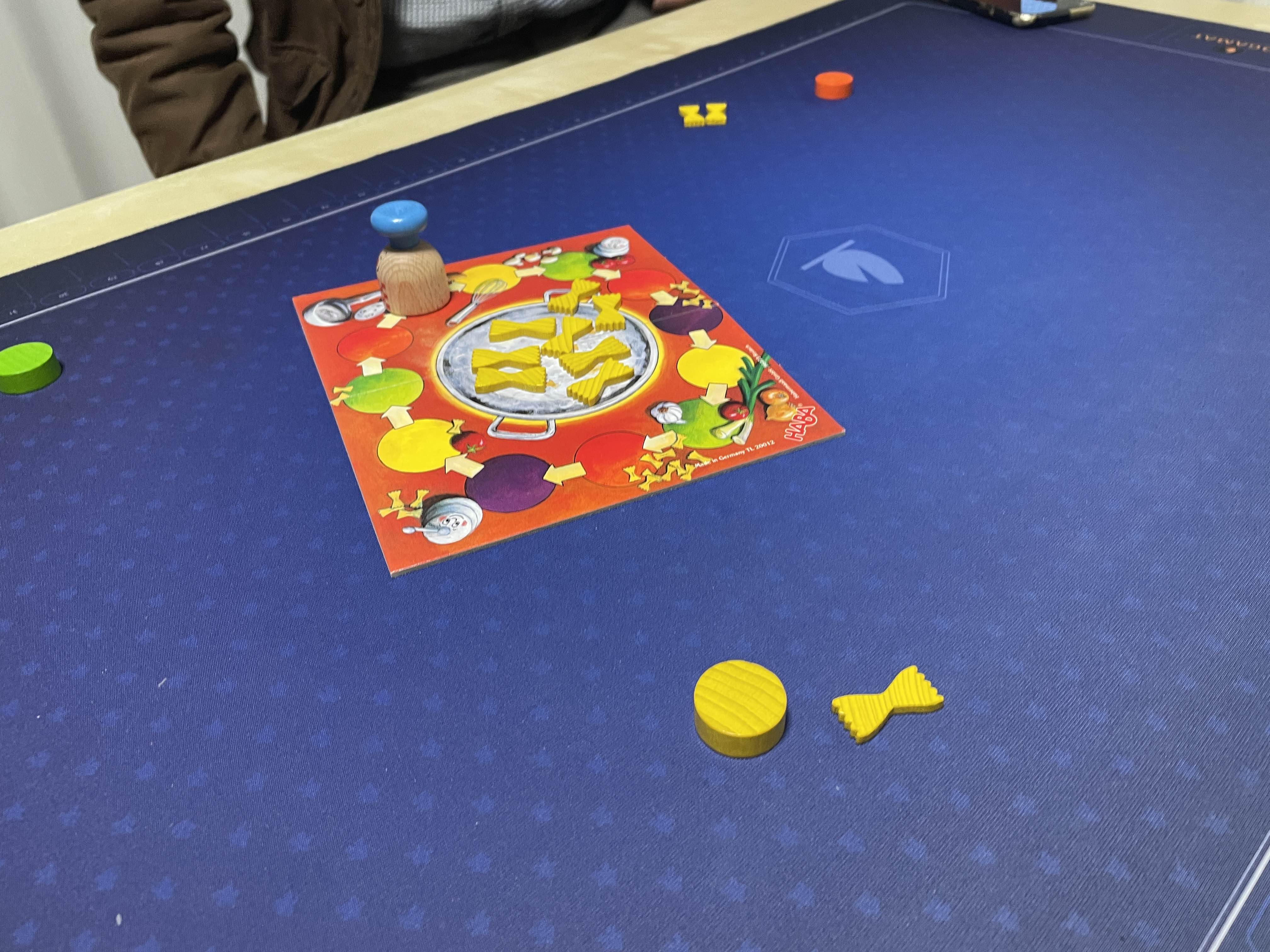 黄色いパスタ3つと自分の色の駒を持ったらスタートです。