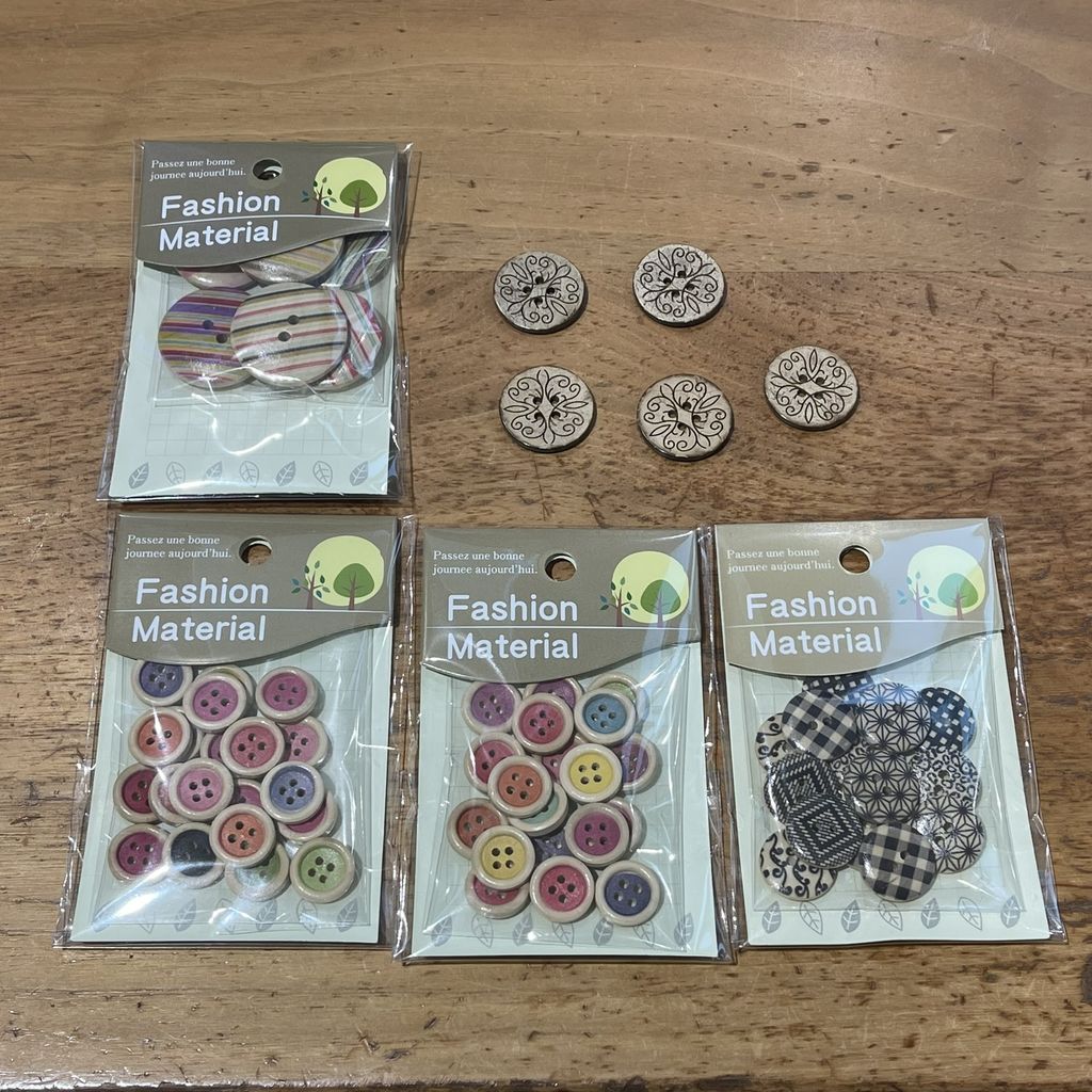 パッチワークの世界観に合わせて、全て木製のボタンです。