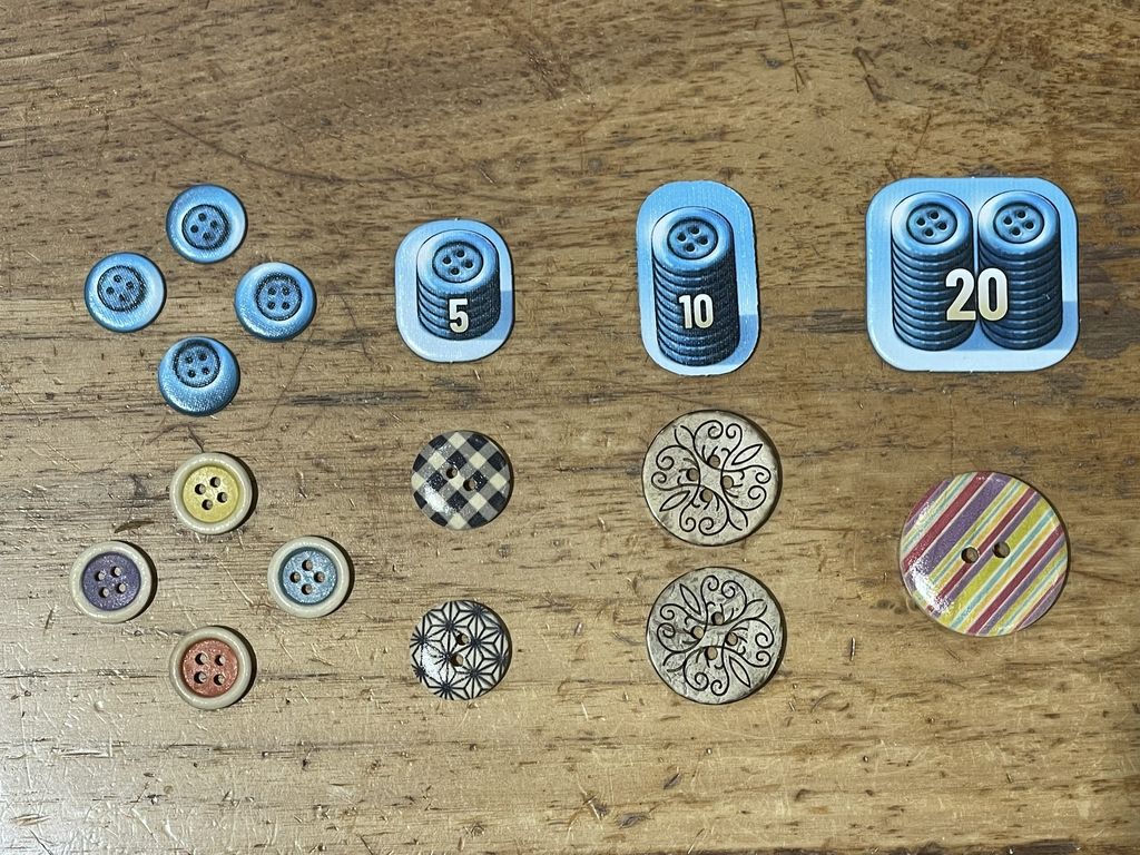 残念ながら芸術点はなく、ゲーム終了時により沢山のボタン(通貨?)を持っていることが勝利条件です。