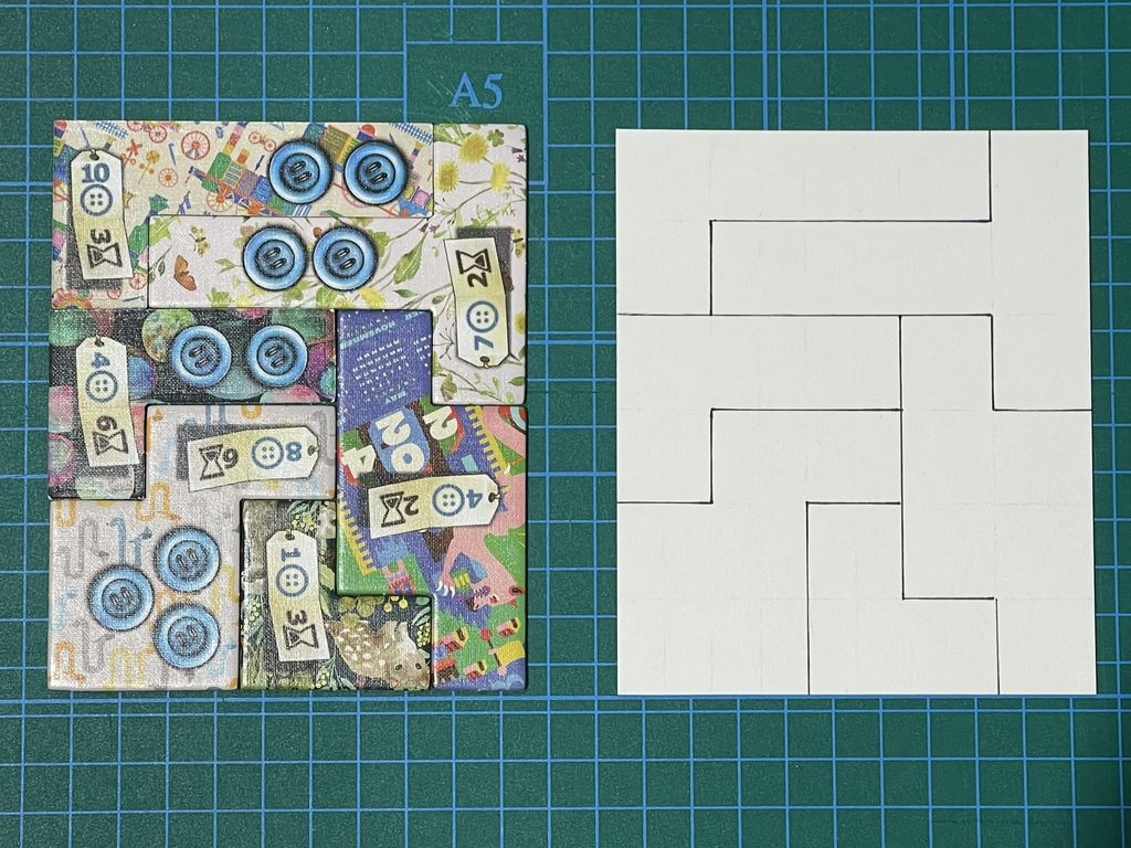 つまりキルトボードを中布のキルト芯に見立てて、そこに布片を縫い付けていく、いわゆるパッチワークキルトを作っていくゲームと言うことになるのでしょうか。